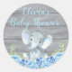 Redonda Pegatina Baby Shower Elephant Azul