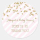 Damos las gracias a los bebés por preferir el pegatina de etiquetas en tonos claros rosa pastel y rayas blancas con confeti de color dorado y texto de estilo manuscrito. Personalizable con tu propio texto. La manera perfecta de decorar tu ducha de bebé favorece y agradece a tus invitados por ser parte de tu día especial.