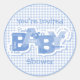 Adorables Nips y Snails diseño de bebés para niños pequeños. Grandes letras azules para la palabra bebé, fondo de puntos de polka azul y blanco y lindos dichos de bebé: olpes y caracoles, colas de perritos, abrazos, cosquillas, milagro y amor. Un cachorro y un caracol completan el diseño. Invitaciones personalizadas para duchas de bebé, notas de agradecimiento, sellos postales, pegatinas, etiquetas, colgadores de puertas de vivero y más! ¡PinkInkArt original!