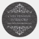 El clásico es el tema de este pegatina. Se utiliza un patrón de damasco contra el negro rico con adornos espinosos que enmarcan el nombre de su negocio en gris suave y la principal información de contacto en blanco brillante. Uso para un negocio de diseño interior, una tienda minorista, mayorista, estilista o salón. Perfecto artículo promocional o uso en paquetes o como sellos para sobres. Disponible en colores alternativos con etiquetas, sobres y tarjetas de visita que coincidan.