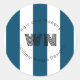 Redonda pegatina blanco azul monograma logotipo de negocio