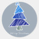 Redonda Pegatina Blue Sketchy Christmas Tree