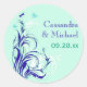 Redonda Pegatina Boda Blue Green White Aqua Floral de 1,5"