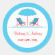 Moderno y llamativo pegatina de bodas en la playa con un aspecto elegante. Dos tumbonas simbolizan a la novia y al novio bajo una sombrilla de playa. Diseño limpio, ideal para un boda con temática de playa, mar o océano. Ideal para un boda de verano. Utilícelo para sellar sobres o para favores partidarios. CONTACTE CON MARLENEDESIGNER SI DESEA UN CAMBIO DE COLOR O DE TEXTO EN ESTE PEGATINA.