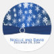 Redonda Pegatina Boda de copos de nieve azules y blancos
