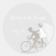 Redonda Pegatina Boda de la pareja de bicicletas de plata