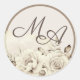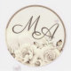 Redonda Pegatina boda de rosas blancas rústicas monogramad