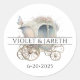 Boda de hadas de bosque encantado pegatinas o pegatinas para sobres, con un transporte mágico de boda de acuarela exuberante