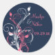 Este moderno pegatina o sello para sobres floral redondo de 1.5", rosa azul marino y blanco, combina con la invitación matrimonial que se muestra a continuación. Úsalo para sellar tu invitación para enviar un bonito conjunto. También puedes cambiar la forma y el tamaño y usarlo en tus favores de boda. TENGA CUIDADO si cambia usted mismo la forma del pegatina, ya que parte del diseño y del texto pueden cortarse. Para evitar una impresión errónea, por favor envíeme un correo electrónico para solicitar otra forma. Si necesita algún otro elemento que coincida, o ayuda para personalizar este pegatina, envíe un correo electrónico a niteowlstudio@gmail.com.