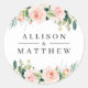 Redonda pegatina boda floral rosa moderno