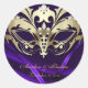 Redonda Pegatina Boda púrpura de mascarada dorada