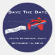 Bon Voyage pegatina con avión rojo tirando a lo largo de un cartel que dice "Bon Voyage". Un pegatina amable que le recuerda a los invitados que guarden la fecha para el retiro de un jefe o un fiesta de trabajo conjunto, o simplemente un pegatina para que todos se pongan el último día diciendo "te echarán de menos". Personalizar con su propio texto, fuente, tamaño y color.