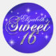 Redonda Pegatina Brillo Azul Dulce Dieciséis Cumpleaños