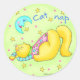 El gato Nap Cat está haciendo lo que los gatos hacen mejor - dormir la siesta. Este pegatina coincide con el papel y la invitación. Lleva una adorable tapa rosa con estrellas y mangas rayadas de agua. La luna está colgando encima del gatito Cat Nap, mirando con una sonrisa. Kitty también tiene una sonrisa alegre, así que sabes que está teniendo dulces sueños. El texto de "Cat Nap" está sobre un fondo verde lima salpicado de estrellas amarillas y puntos rosas. La imagen está encerrada con un colorido borde blanco. El gato Nap Cat es uno de los 10 gatos de la colección de tela "Meow Meow" de Phyllis Dobbs.