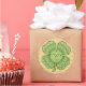 Este clásico trébol de cuatro hojas sobrepone un diseño de círculo concéntrico con capas de tejas celtas en múltiples tonalidades de verde con un poco de naranja para el acento.