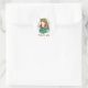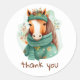 Un pegatina con la imagen de un caballo acuarela y flores. El caballo está vestido con ropa turquesa. El ilustracion se creó con el programa ai