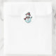 Redonda Pegatina con un lindo hombre de nieve sosteniendo
