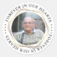 Pegatina en memoria de la solidaridad funeraria. Pegatina con una foto de la persona que se recuerda, el simpático título "Para siempre en nuestros corazones", su nombre y fechas de nacimiento/muerte. Este pegatina conmemorativo puede ser usado para la celebración del Día de la Vida, el Día de la Memoria y los funerales, o enviado como pegatina en un sobre o puesto en un regalo para un miembro de la familia o amigo.