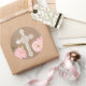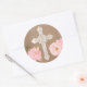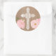 un pegatina bonito perfecto para los bautismos y los bautizos. Ofrece una cruz blanca y detalles rosados de la flor de la acuarela.