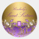 Redonda Pegatina Cumpleaños 16 Morado y Perlas