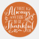 Redonda Pegatina de Acción de Gracias Naranja de Guión Agr