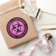 Redonda Pegatina de advertencia de peligro bilingüe rosado