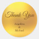 Elegante pegatina redonda de agradecimiento con acabado metálico dorado. Texto listo para ser personalizado. Ideal para envolver regalos, sello de sobre, cajas de favores y para todo lo demás. Un fino detalle de agradecimiento que todos amarán.