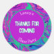 Mi hija y yo creamos este diseño de remolino genial en rosa, púrpura, azul y verde. Puedes personalizar esta pegatina para un divertido detalle de agradecimiento en la fiesta. Etiqueta los detalles de la fiesta de slime con esta pegatina para un regalo de agradecimiento lindo para tus invitados. "Gracias por venir" está escrito en una divertida fuente editable. Esto coordina con la invitación para una fiesta de cumpleaños de slime para niñas. Este diseño retro funky ondulado es genial para una vibra divertida. Todo el texto se puede personalizar. Diviértete.