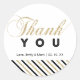 Esta pegatina moderna de agradecimiento presenta brillo dorado y tipografía y rayas negras. Perfecta para detalles de fiesta modernos y elegantes. Más artículos coincidentes disponibles en mi tienda BaraBomDesign. (tarjeta de invitación, tarjeta de agradecimiento, etiqueta de agradecimiento, tarjeta de solicitud de libro y más)