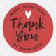 Un pegatina rojo personalizado de 1/2 pulgadas "hecho con amor, gracias" con un fondo de color rojo. Hazlo tuyo añadiendo tu propio nombre. Un toque de bonito para todos tus regalos hechos a mano y caseros. Viene también con un tamaño de 3 pulgadas. Perfecto para agradecer a los clientes en su negocio de artesanía casera. Diseñado para ti por Blackberry Boulevard.