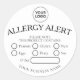 Redonda Pegatina de Alerta de Alergia Blanca y Negra