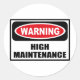 REDONDA PEGATINA DE ALTO MANTENIMIENTO DE ADVERTENCIA