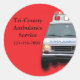 Pegatina o sello para sobres para servicios de ambulancia o de emergencia. El diseño presenta una ambulancia de fondo rojo. (Nota: sólo se puede ver la compresión en la vista previa)