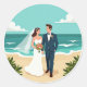 Incluye 20 pegatinas pequeños en una hoja. Perfecto para las parejas, este encantador pegatina muestra a una pareja recién casada en su boda de ensueño en la playa, sonriendo mientras caminan de la mano junto al océano. Captura la esencia del amor y el romance con esta escena idílica.