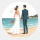 Incluye 20 pegatinas pequeñas en una hoja. Celebra tu amor con esta hermosa ilustración de una novia y un novio caminando de la mano en una playa serena. Perfecto para parejas que buscan pegatinas elegantes y románticas con tema de boda.