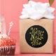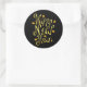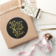 Pegatina redondo con una imagen de "Feliz Año Nuevo" impresa con letras de oro divertidas en negro. Vea confección, etiqueta y papel de envoltura correspondiente. Vea toda la colección de Pegatinas de Año Nuevo en la categoría CARDS & PEGATINAS en la sección VACACIONES.