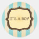 Redonda Pegatina de Baby Shower azul - Rayas de época