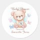 Celebra a la futura madre con un lindo oso y mariposas, pegatina de ducha de bebé. Incluye el nombre del evento especial junto con el nombre de la futura madre y su monograma. Excelente para regalos, favores y más. Utilice la plantilla para personalizar.