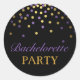 El moderno pegatina Bachelorette presenta un diseño de confeti morado y dorado. ¡Mira la tienda de perseguir a los lobos por productos similares!