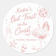 Pegatina de bachillerato rosa de la última tostada de la playa de la costa costera