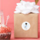Esta encantadora pegatina de bautizo muestra a un dulce bebé afroamericano en tonos azules suaves, arrodillado junto a una cruz en oración. Diseñada para agregar un toque conmovedor a su celebración, es ideal para sellar sobres o decorar bolsas de favor. Un detalle encantador para bautizos o eventos de dedicación.