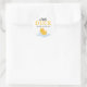 Un pato está en el camino del Pegatina redondo clásico de Baby Shower. Artículos coincidentes disponibles en la colección 'Yellow Duck Bubble Bath'.