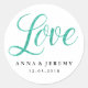 Redonda Pegatina de Boda de acuarela de menta de amor