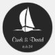 El pegatina redondo se muestra en una combinación de colores blanco y negro con una huella de velero. Personalizar este pegatina cambiando el texto a tu nombre y fecha e incluso eligiendo y cambiando a tus colores favoritos.