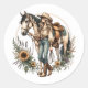 Redonda Pegatina de caballos y Chicas con girasoles