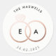 Este pegatina redondo, que cuenta con anillos de boda de oro rosa interbloqueados, es totalmente personalizable y una gran adición personalizada a tus favores matrimoniales, sobres y más.