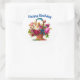 Redonda Pegatina de cesta floral de cumpleaños feliz