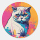 Redonda Pegatina de círculo colorido de gato blanco