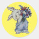 Un adorable conejito que sostiene un ramo de flores aparece en esta pegatina redonda para primavera y Pascua. Utilízala para esos envíos especiales de Pascua, decoración, scrapbooking y más. ¡Colorida y muy linda!