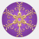 Este pegatina y/o sello para sobres de copo de nieve morado y dorado coincide con la invitación a la boda que se muestra a continuación.